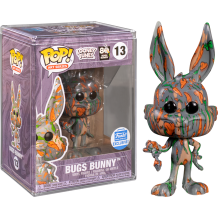 The oh so looney Bugs Bunny joins Funko’s new line of Art Series Pop! Vinyl Figures, featuring this nutritious carrot all-over-print! Bugs comes prepackaged in a Funko Pop! Protector and features a Funko exclusive sticker!