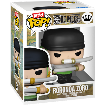 This collectible includes Bitty POP! Nami and Bitty POP! Roronoa Zoro and can display a total of 18 Bitty POP! characters.