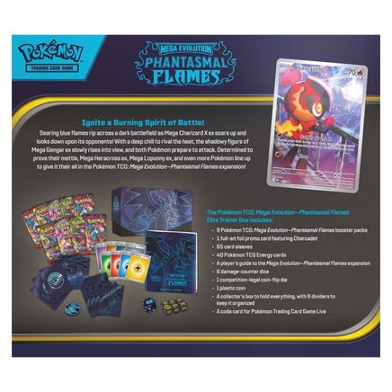 The Pokémon TCG: Mega Evolution—Phantasmal Flames Elite Trainer Box includes: