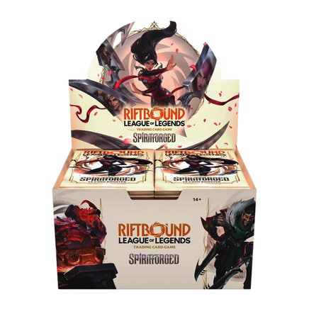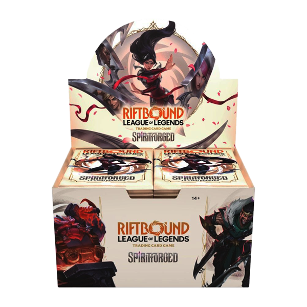 The Rift awaits—are you ready? Spiritforged, the second set of the Riftbound: League of Legends TCG, brings even more Champions to the battlefield! These 14-card booster packs pull from a pool of over 220 cards with 60+ alts, while this set adds a new edge to Riftbound with new Legends, powerful cards, and new mechanics. Configuration: - Each booster display contains 24 booster packs